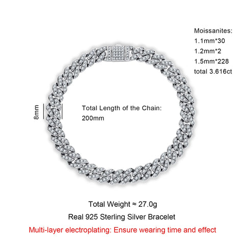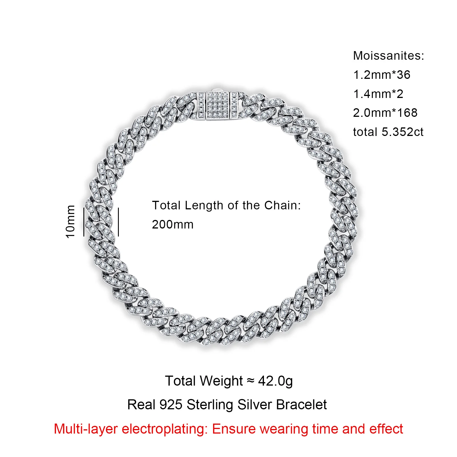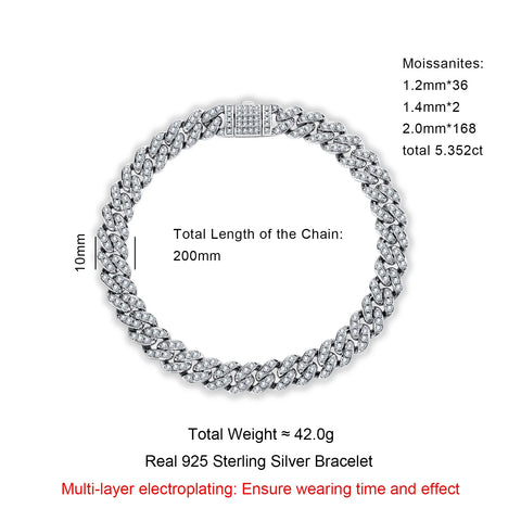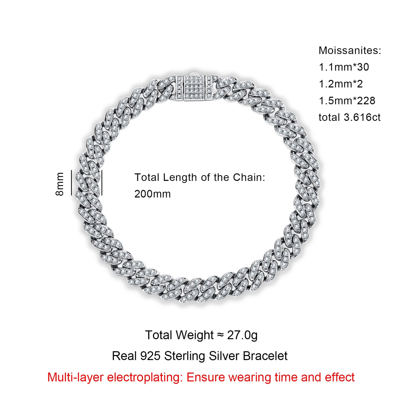 Moissanite Cuban Link Bracelet – 925 Silver Iced Out Hip Hop Jewelry Sale