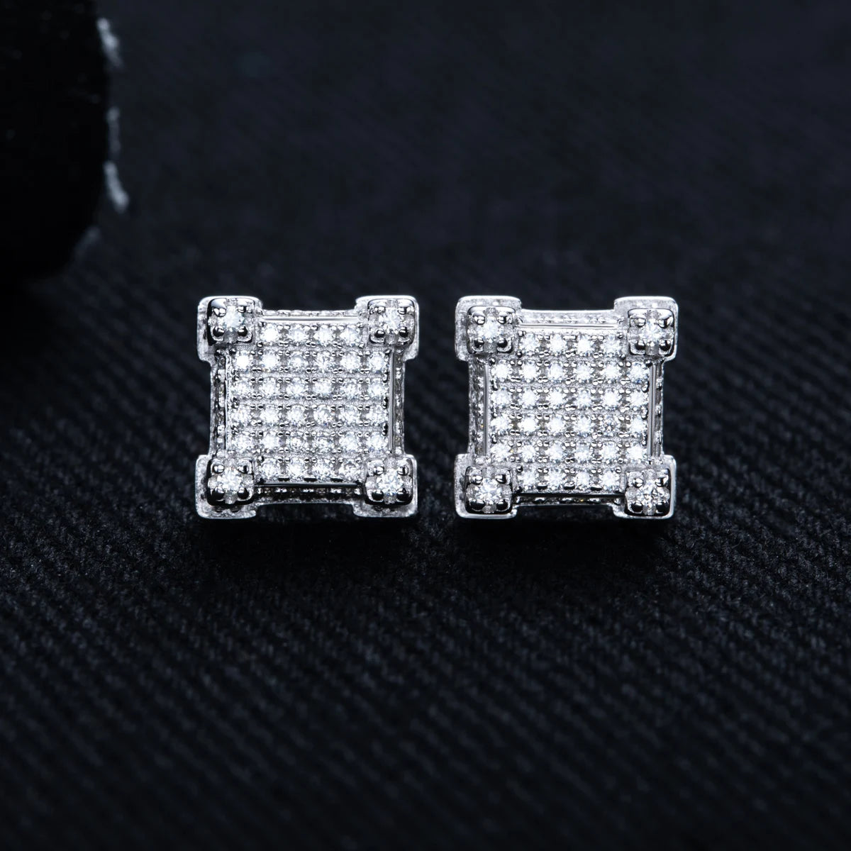 Crafted from 925 sterling silver, they ensure durability, comfort, and a polished shine that lasts. The sharp square design brings a modern, urban edge, making them perfect for hip hop and street style enthusiasts.