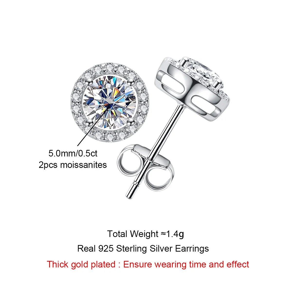 1cttw Moissanite Round Stud Earrings – 925 Silver Unisex Sale