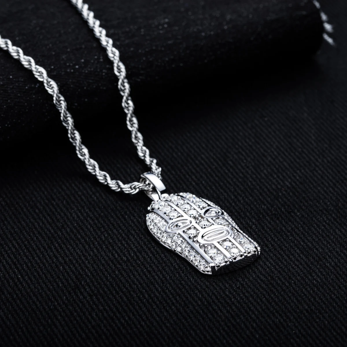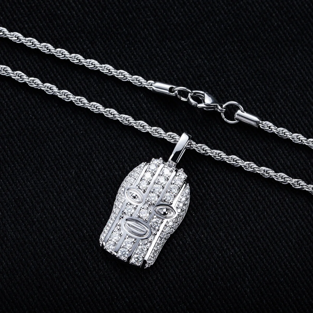 Stand out from the crowd with the 1.03cttw Moissanite Masked Head Pendant Necklace, a bold fusion of artistry and attitude. Designed for men who embrace individuality, this unique pendant features a masked men’s head design set with dazzling 1.03cttw D-color VVS1 Moissanite stones for a striking, diamond-like brilliance.