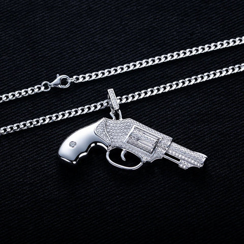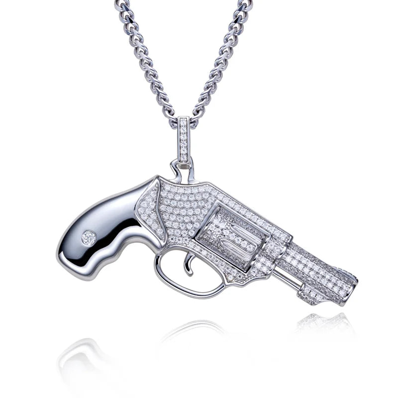 Bring heat to your collection with the Moissanite Pistol Pendant Necklace—a fearless fusion of luxury craftsmanship and hip hop energy.