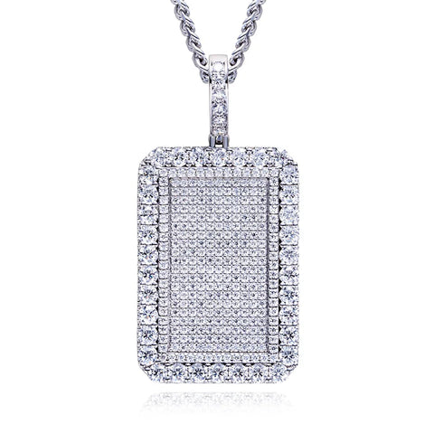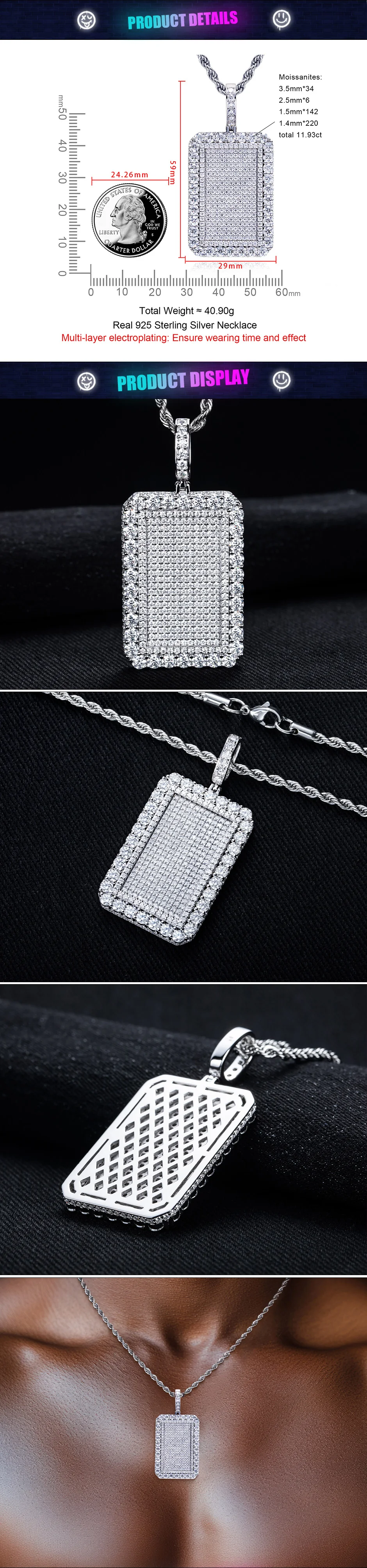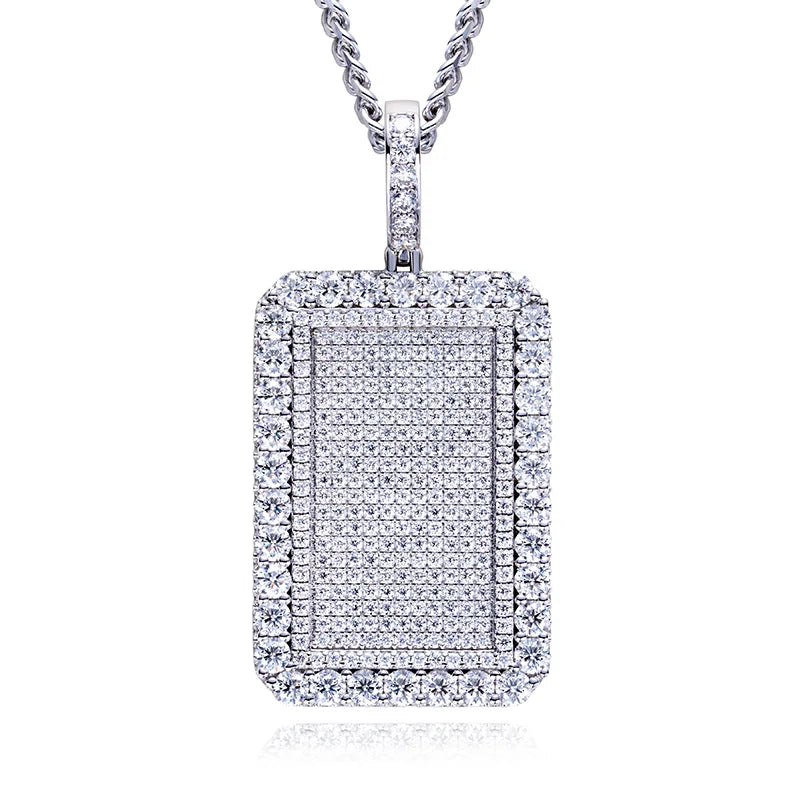 Make a statement with the 11.93cttw Moissanite Rectangle Pendant, a bold fusion of luxury and hip hop style. Featuring D-color, VVS1 moissanite, this pendant dazzles with diamond-like sparkle, instantly elevating your look.