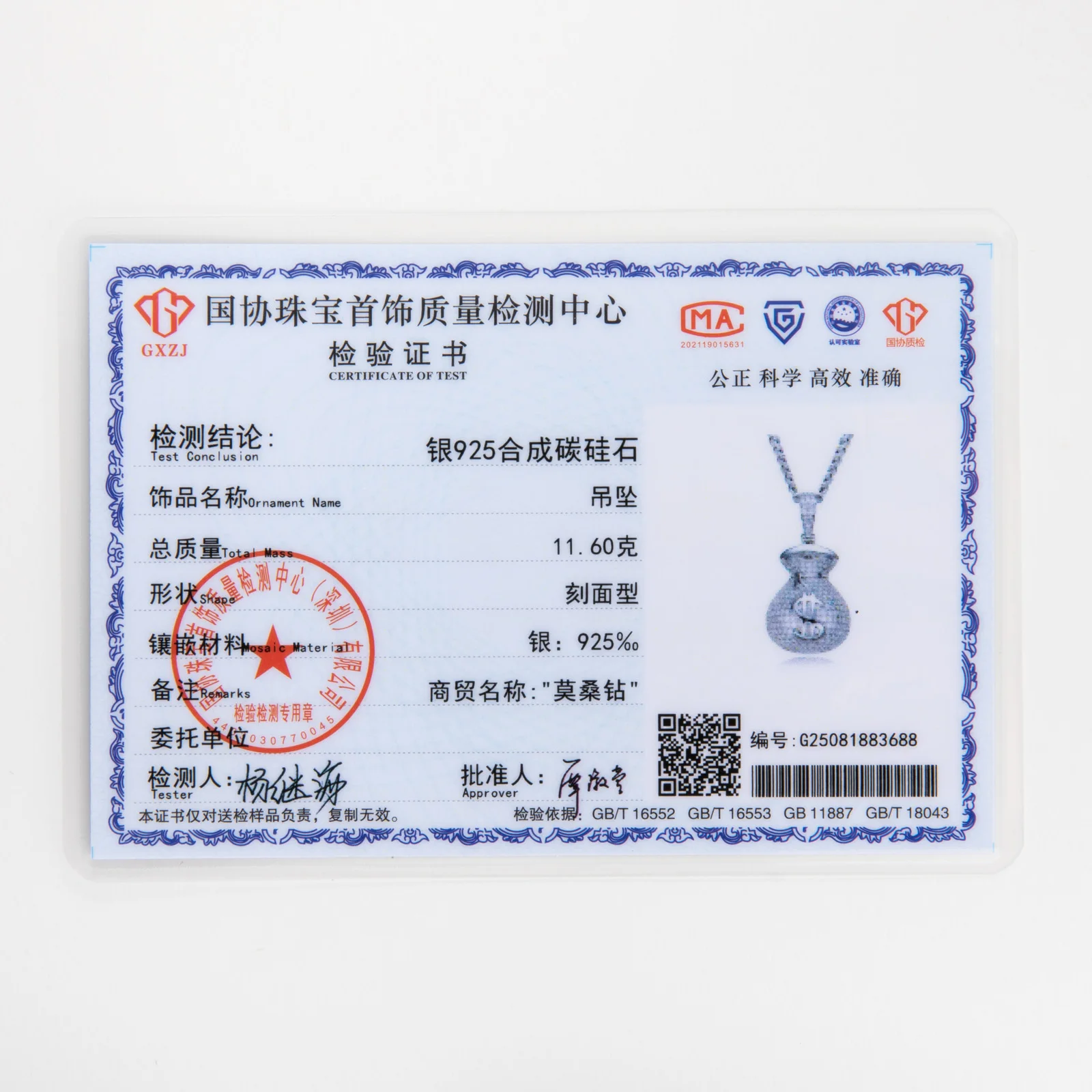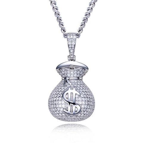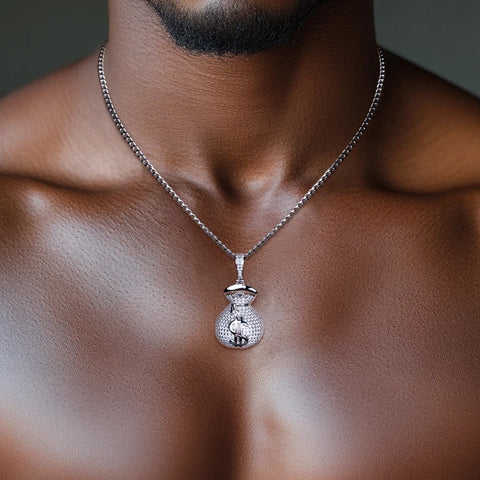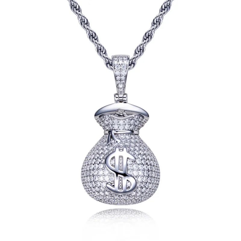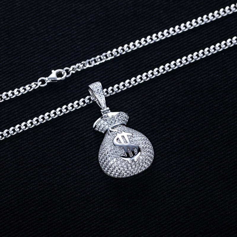 2.8cttw Moissanite Money Bag Pendant – 925 Silver Hip Hop Necklace Sale