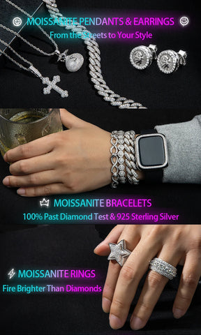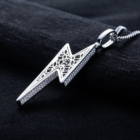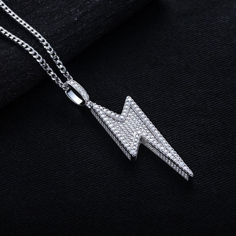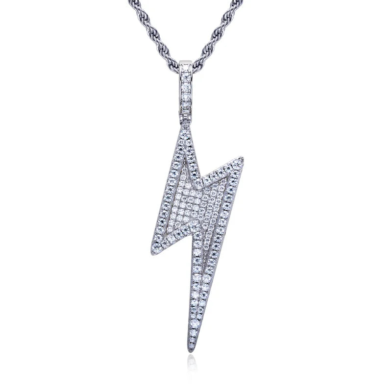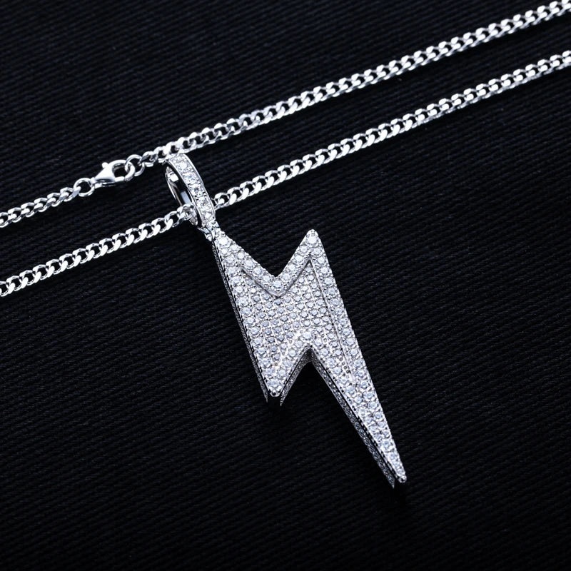 5.6cttw Moissanite Lightning Pendant – 925 Silver Iced Necklace - Steel Chain