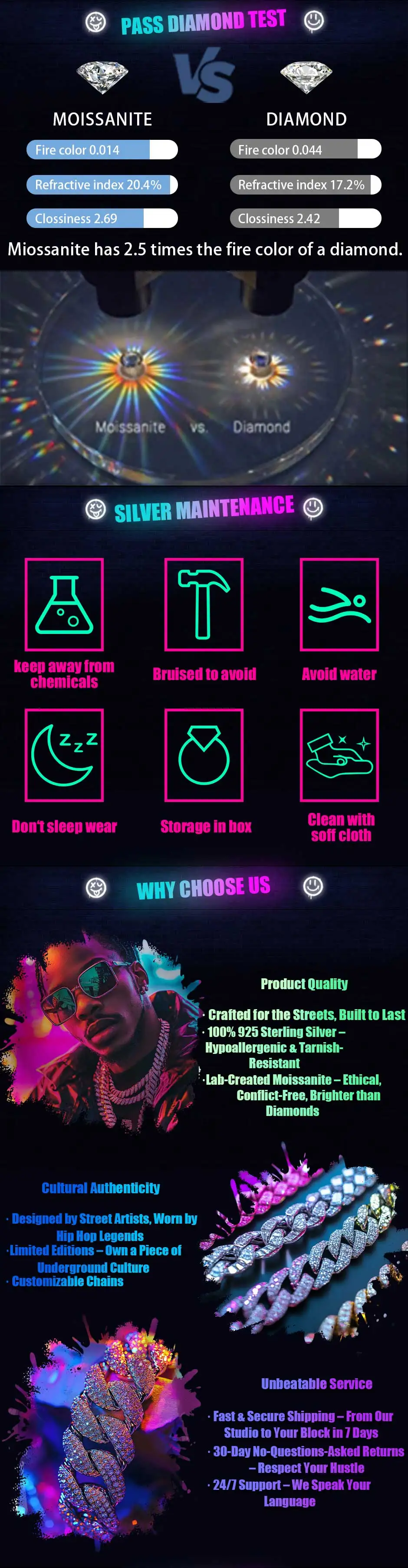 • Iced-Out Moissanite: 5.89cttw of premium moissanite stones provide brilliant sparkle that rivals diamonds.