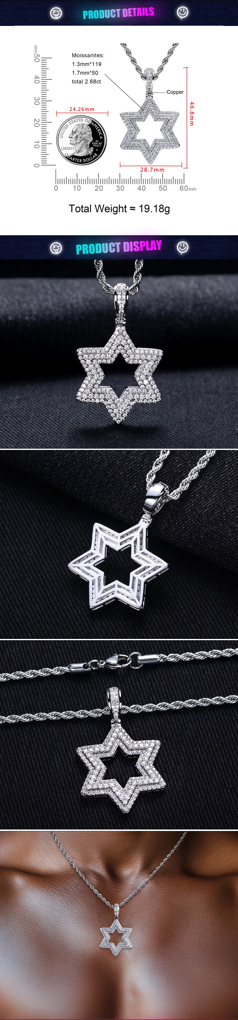 Star of David Moissanite Pendant – 14K Gold Plated Hip Hop Necklace