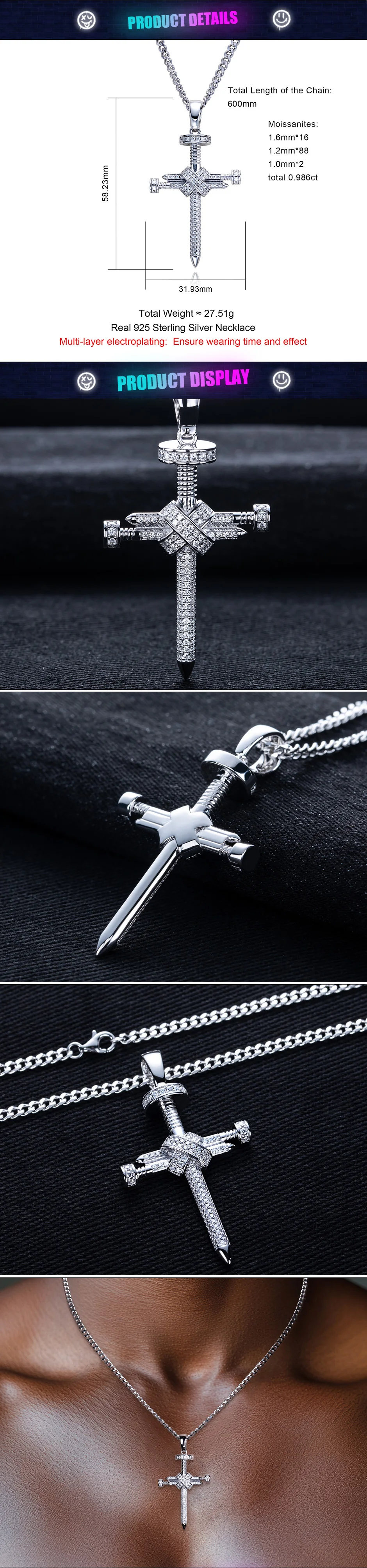Moissanite Screw Cross Pendant – 925 Silver Hip Hop Necklace