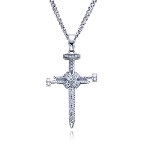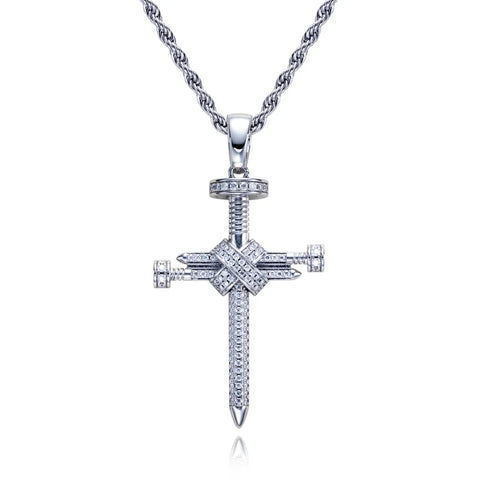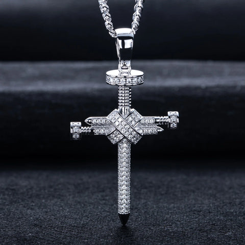 Turn heads with the Moissanite Iced Out Screw Cross Pendant, a bold fusion of rock punk edge and hip hop style. Featuring D-color, VVS1 moissanite, this pendant dazzles with diamond-like brilliance, giving your look maximum shine and impact.