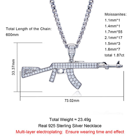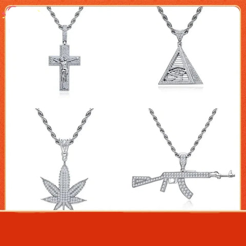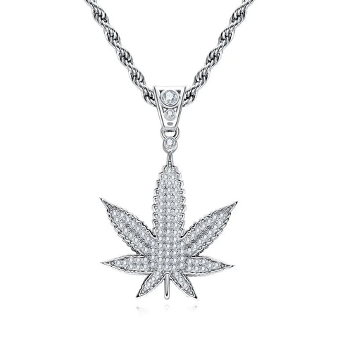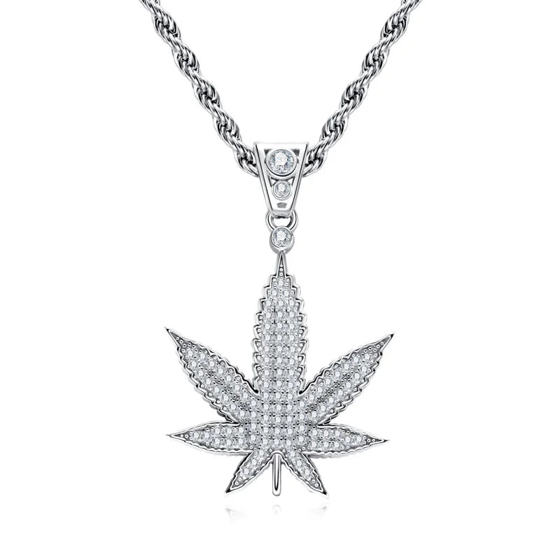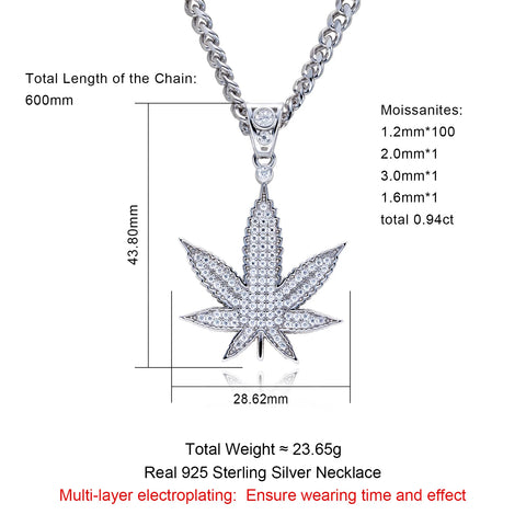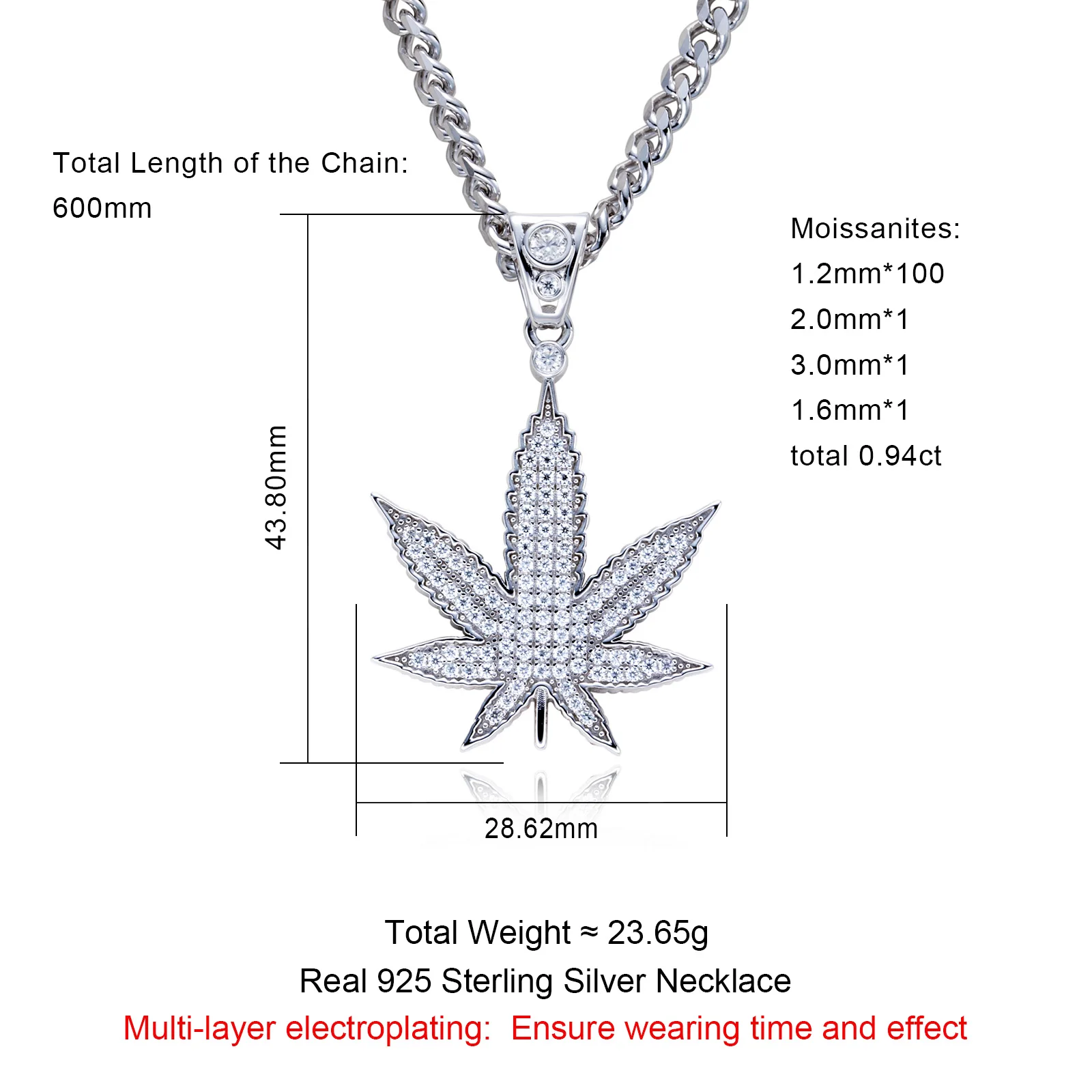 Moissanite Iced Out Pendant – 925 Silver Hip Hop Necklace for Men - Maple Steel Chain / CHINA