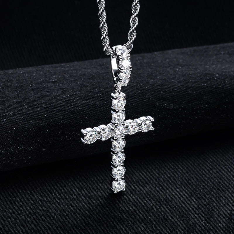 Elevate your fashion game with the Moissanite Bling Cross Pendant Necklace.