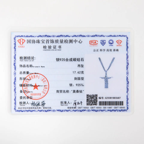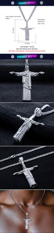 Showcase faith and style with the Moissanite Christ the Redeemer Pendant Necklace. This detailed piece features the iconic Redeemer statue design, fully iced with 1.23cttw of D-color VVS1 Moissanite, offering stunning brilliance and spiritual elegance.