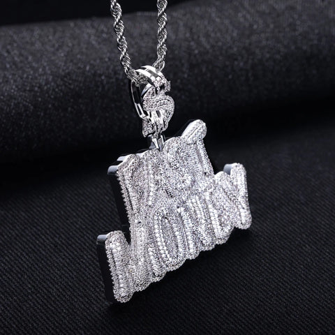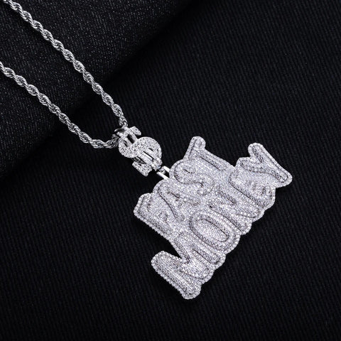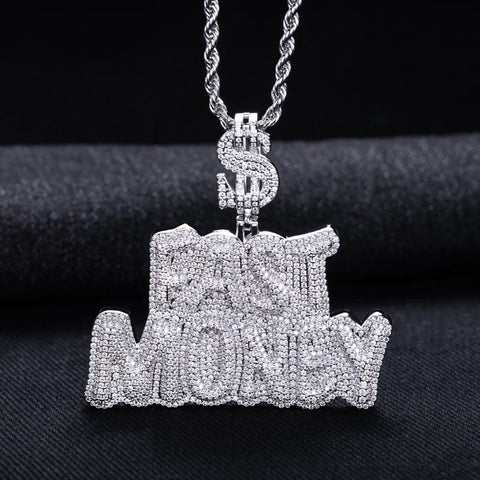 “Fast Money” Moissanite Pendant – 14K Gold Plated Necklace - Steel Chain / CHINA