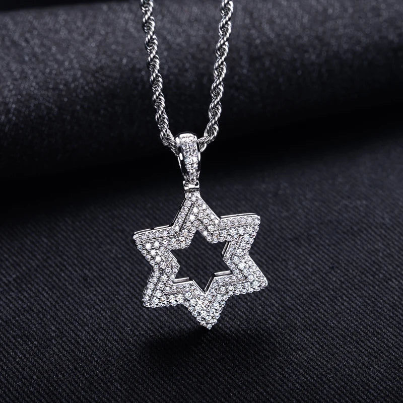 Showcase your style with the Star of David Pendant, combining cultural symbolism with bold hip hop fashion. This pendant is crafted for men who want a head-turning, luxurious accessory.